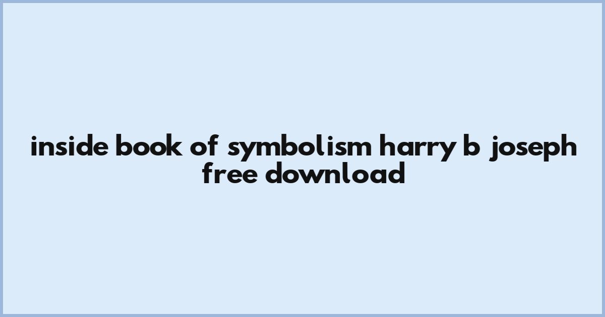 Inside Book Of Symbolism Harry B Joseph Free Download
